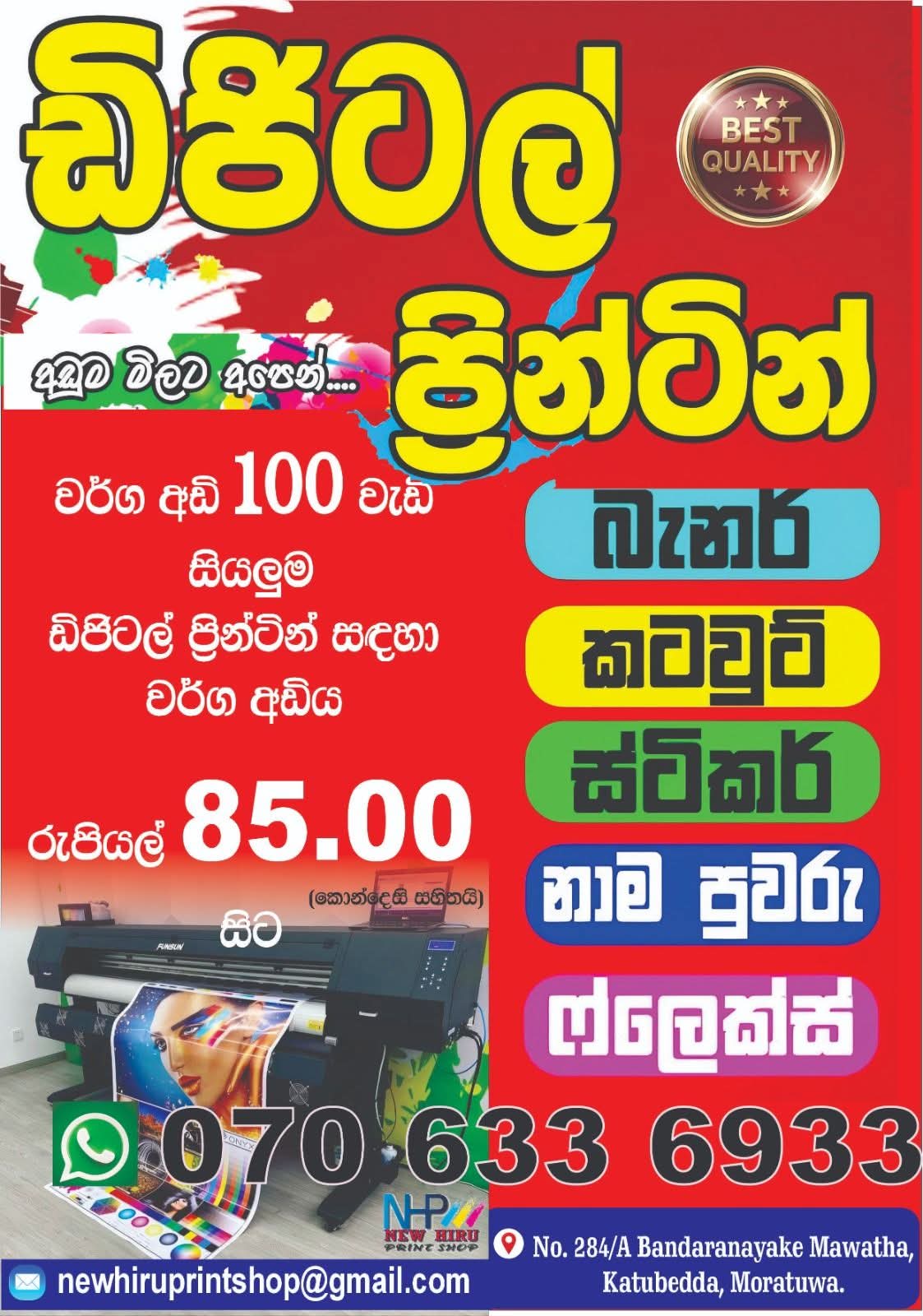 At Hiru Designing & Printing, we are dedicated to providing innovative, reliable, and high-quality printing solutions tailored to meet the unique needs of every client. Let us help you bring your creative vision to life.